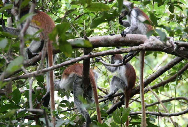 The Jozani Forest is located in the central east region of Zanzibar Island is the home of rare Red Colobus Monkey, which is only endemic to Zanzibar. A red colobus monkey, unlike their more widespread and adapted cousins, the Black and White Colobus, are a rain forest species which are now confined to very small areas of equatorial forest in tropical Africa. It is therefore a rare treat to be able to see them here in Zanzibar. The reserve also accommodate a large mangrove swamp and a tract of natural forest that is home to a few unique species including the Sykes monkey, bush babies, duikers, hyraxes, over 50 species of butterfly and 40 species of birds.